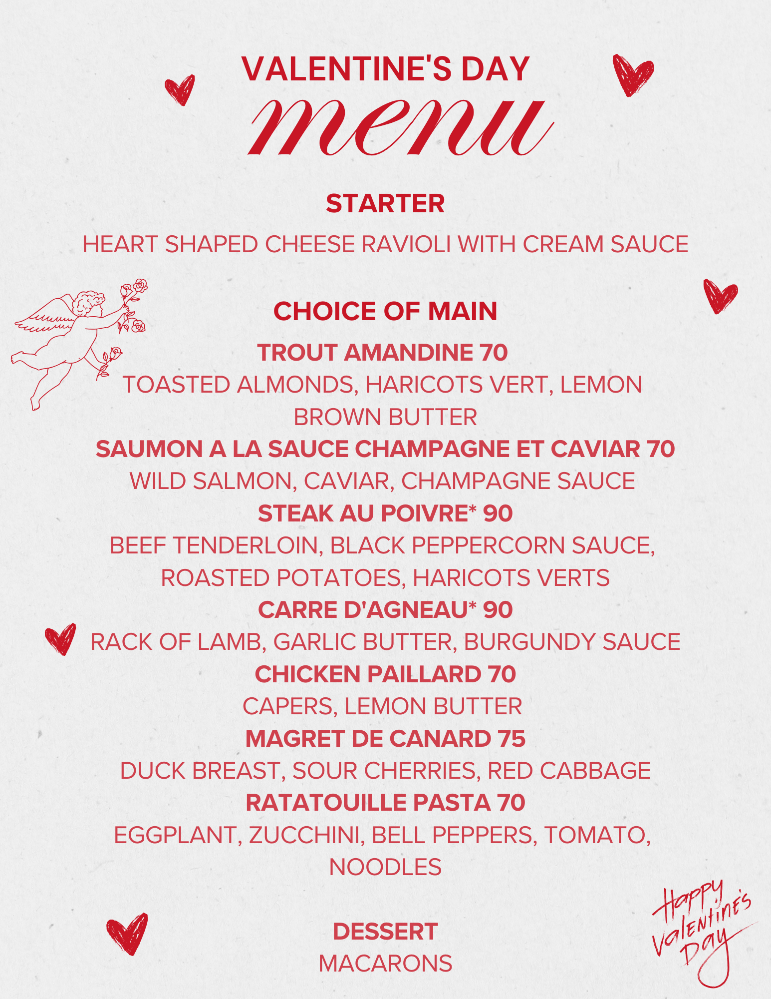 Celebrate love with an intimate three-course Valentine's Day dinner at La BonneVie. Indulge in classic French flavors in a cozy, romantic setting.